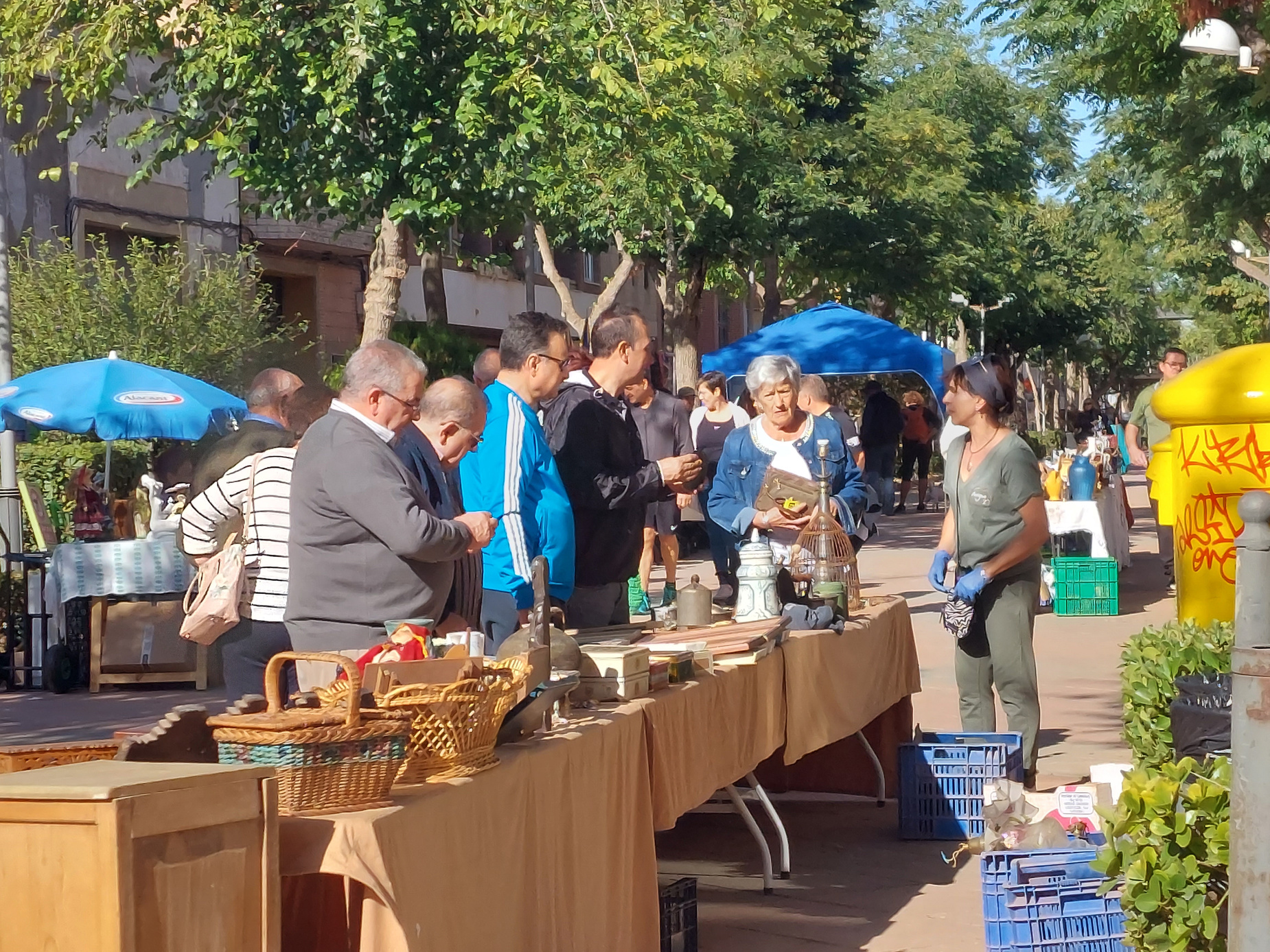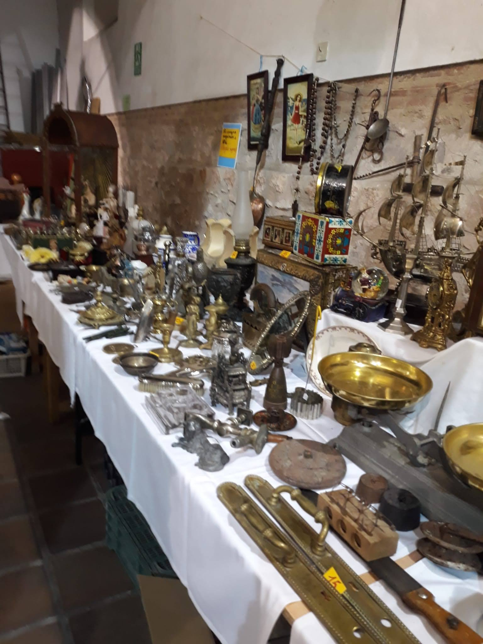 Los objetos se exponen en mesas o en manta sobre suelo.